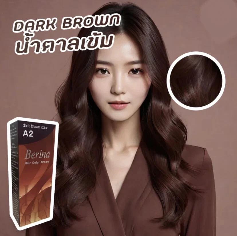 Berina Permanent Hair Dye Color Cream : A2 Dark Brown