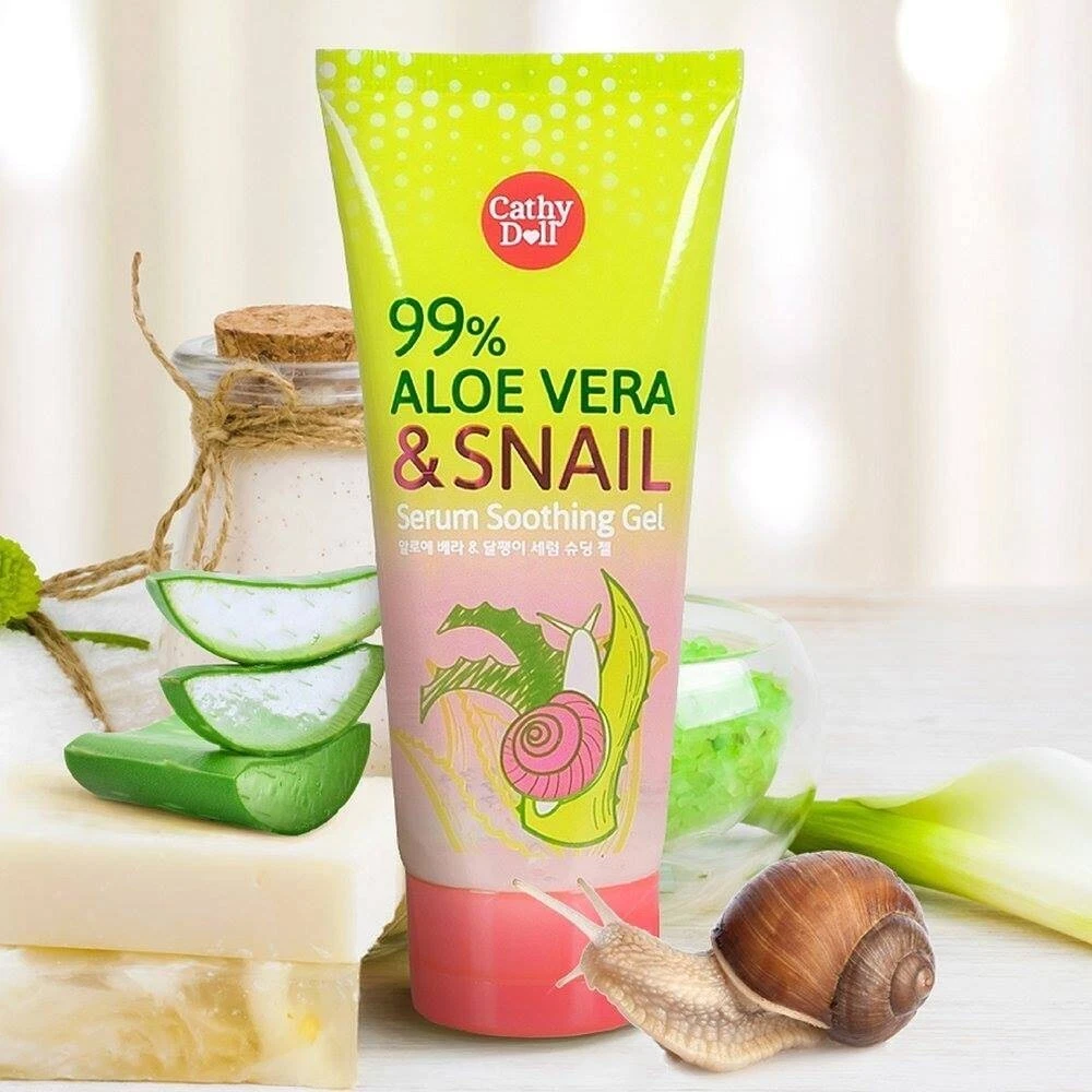 The Cathy Doll 99% Aloe Vera & Snail Serum Soothing Gel is a skincare product designed to hydrate, soothe, and reduce the appearance of wrinkles. This gel combines the natural healing properties of aloe vera with the regenerative benefits of snail serum to provide comprehensive skin care.