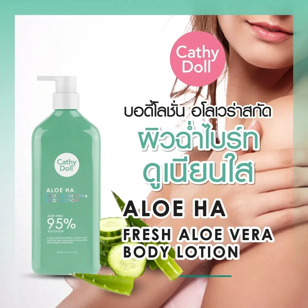 Refresh and clean your skin to perfection with Cathy Doll Aloe Ha Fresh Aloe Vera Body Bath Gel. It has a soothing effect helping to repair skin damage caused by pollution. Infused with 95% Aloe Vera extract to deeply restore while locking in moisture and preventing dehydration. Thanks to cucumber and tea tree oil extracts, this soothing bath gel keeps the skin irresistibly smooth, resulting in an incomparable luscious complexion.