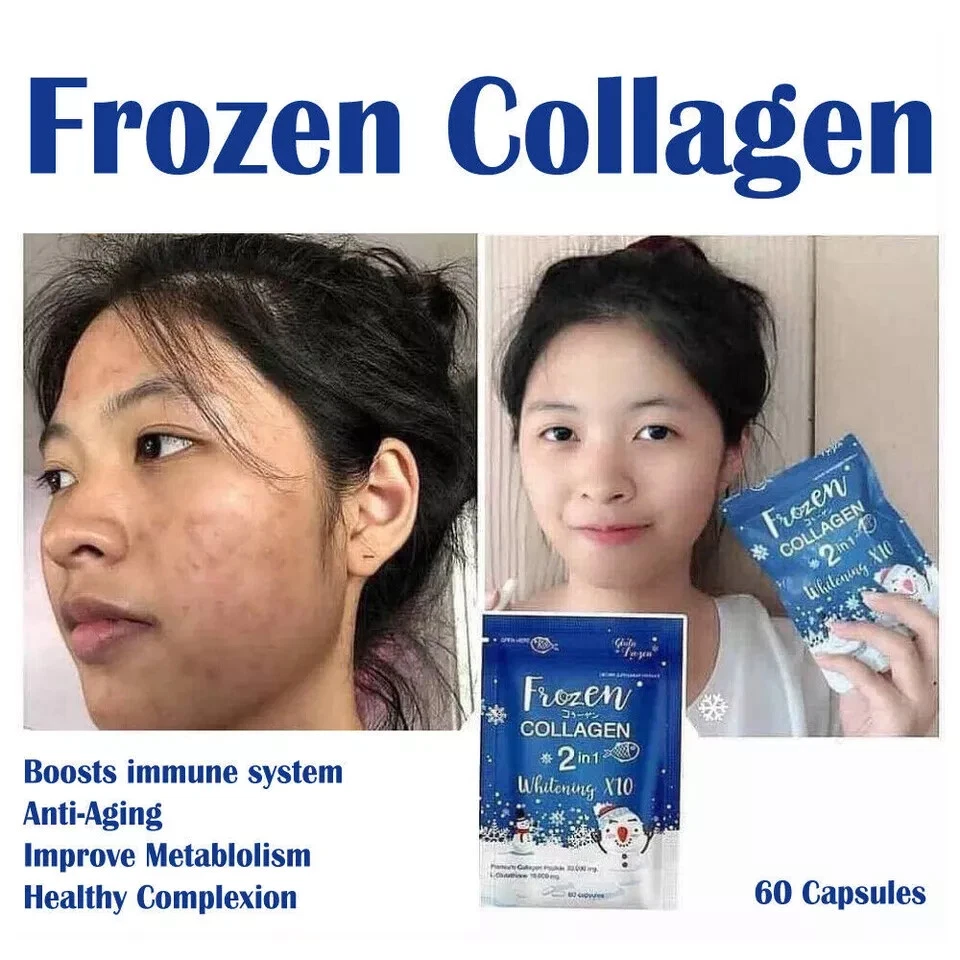 Premium Quality Frozen Collagen with L-Glutathione & Vitamin C. Rapid whitening and enrichment of your skin. Effectively whitens skin. Best seller whitening capsule. Fast Absorbing.