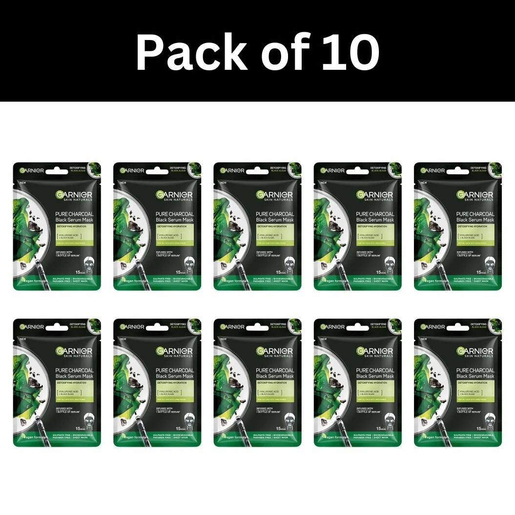 Garnier Serum Sheet Masks give your skin a facial-like glow in just 15 mins and helps brighten it instantly. The Charcoal Face Mask is a breakthrough black tissue mask technology that offers double purifying and hydrating efficacy. Use the Garnier Black Serum Mask if you have dull skin with clogged and enlarged pores. The serum mask will intensely hydrate and purify your skin while also tightening its pores. The sheet mask has been dermatologically tested. Suitable for all skin types, including sensitive skin