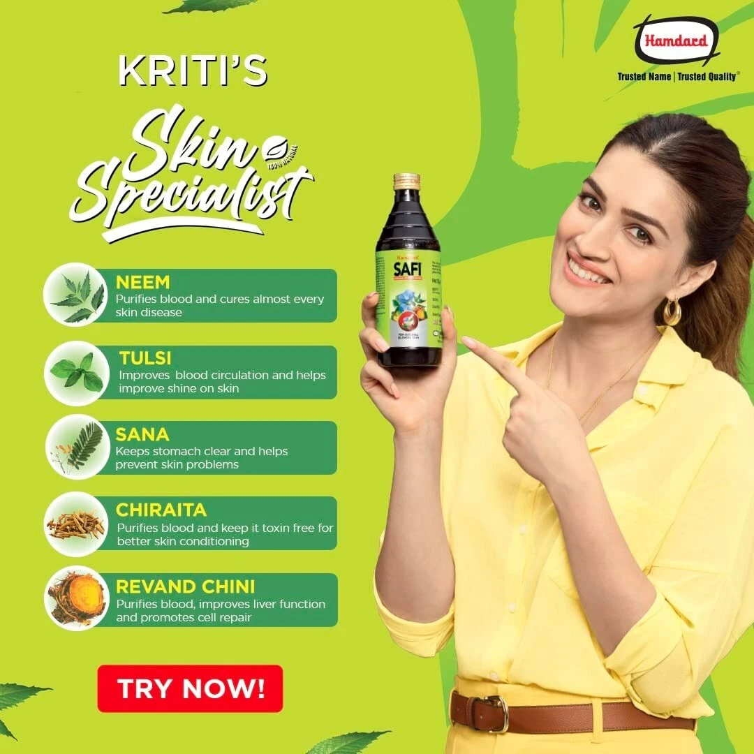 Liver FunctionSafi improves liver function and promotes overall digestive health | Natural Blood PurifierSafi effectively acts as a natural blood purifier that adds glow to the skin | Improves SkinIt nourishes skin from within and maintains healthy and pimple free skin | Keeps Stomach ClearSafi improves appetite and maintains stomach cleanliness, helping to relive constipation |