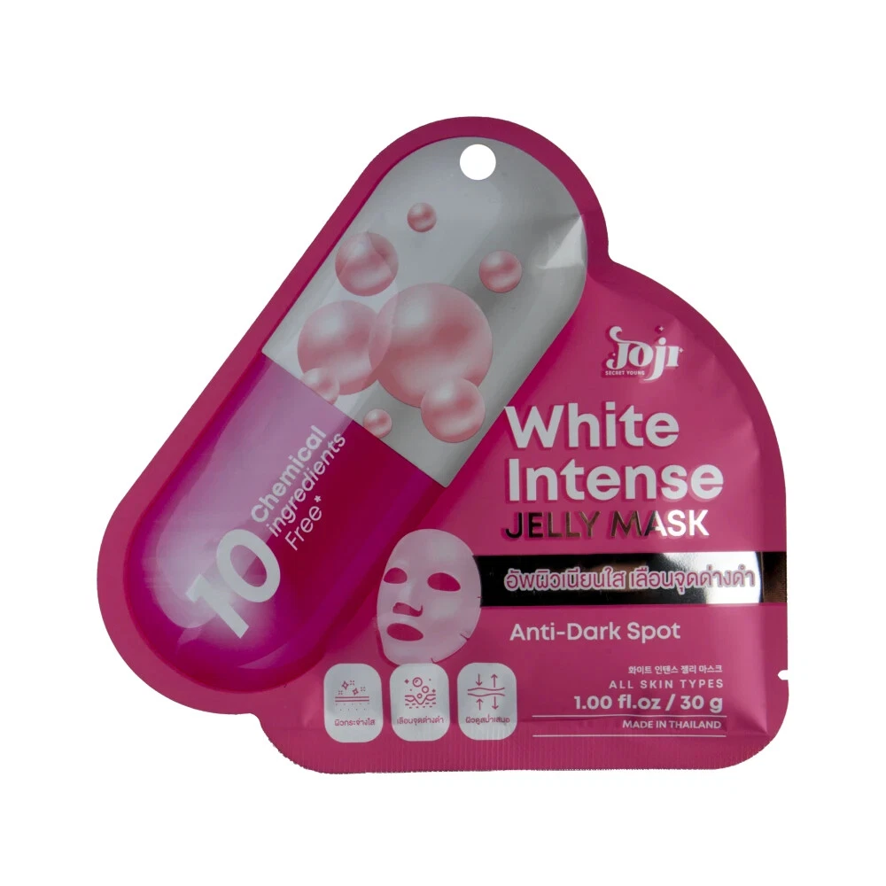 JOJI Secret Young White Intense Jelly Mask 30g Jelly facial mask The formula helps make the skin smooth and clear. Reduce dark spots with Alpha Arbutin ingredients. Suitable for those who have problems with blemishes, freckles, and dark spots. Adjust dull skin color to become brighter. Reduce dark spots caused by sunlight and red spots from acne.