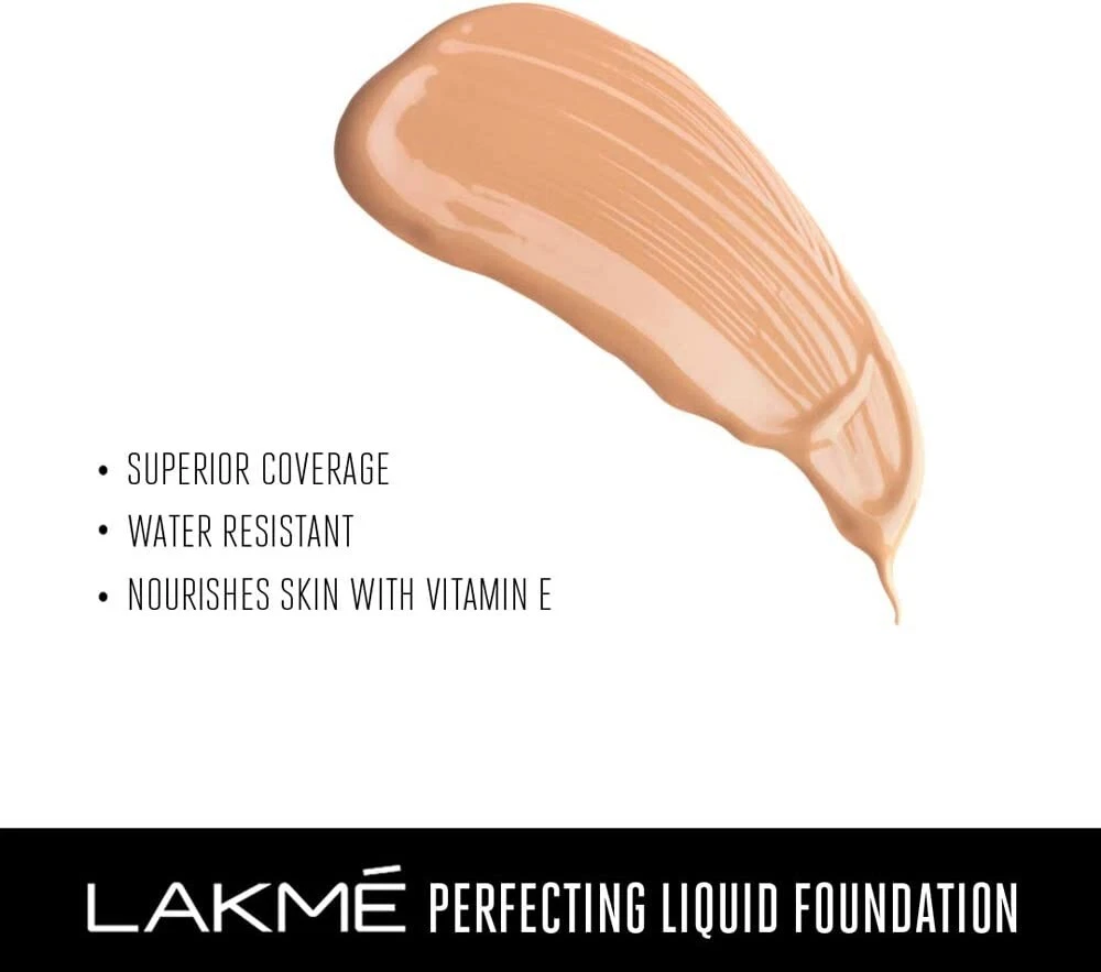 Sport a dazzling glow, wherever you go, with the Lakmé Perfecting Liquid Foundation. An integral part of your face makeup, this liquid based foundation spreads evenly to cover spots, blemishes, dark circles and patchy skin tone. It is formulated to be water-resistant, smudge free and long lasting. The Vitamin E and silicones enrich the skin- rejuvenating, replenishing and nourishing it on application. This foundation is available in a small bottle that’s easy to carry. The Lakmé Perfecting Liquid Foundation blends easily into your skin to create a soft, glowing and feather like finish. A water-resistant, oil-free formula with Vitamin E that provides superior coverage. The foundation contains Vitamin E that soothes and moisturizes the skin. It also has silicones which help in easy application, spreading evenly for an even toned look.The packaging has remained unchanged over the years, and this bottle is synonymous with the word “foundation” for many till now. The formulation is light and easily blendable.Get that instant perfection with the Lakmé Perfecting Liquid Foundation right away! Lakmé is one of India’s leading color cosmetic brands offering a wide range of high-end, world-class color cosmetics and skincare products. Lakmé has a vast product range specially crafted by experts for the Indian skin. The brand has also been redefining fashion in India for over 15 years with Lakmé Fashion Week, India’s premier fashion event.