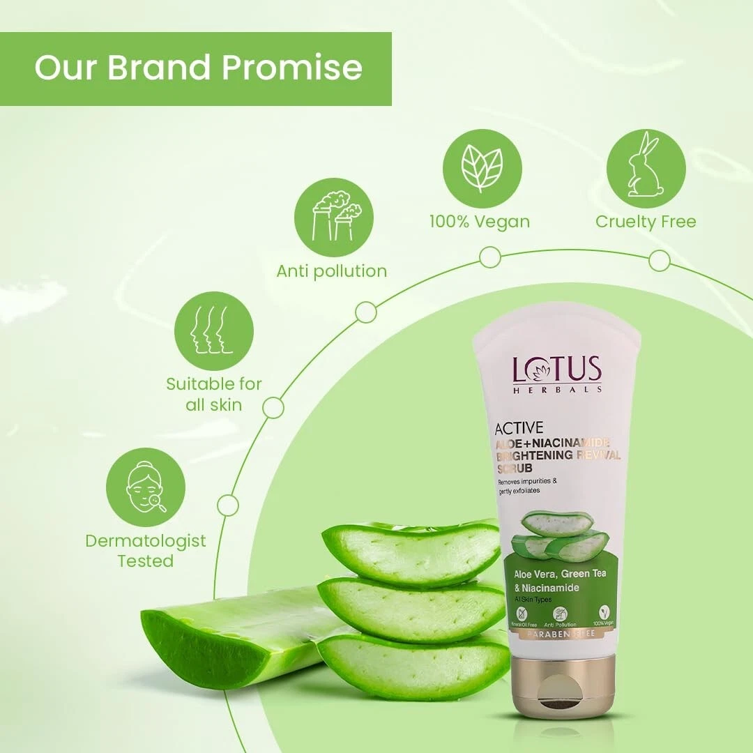 • Lotus Herbals Active Aloe + Niacinamide Brightening Revival Scrub