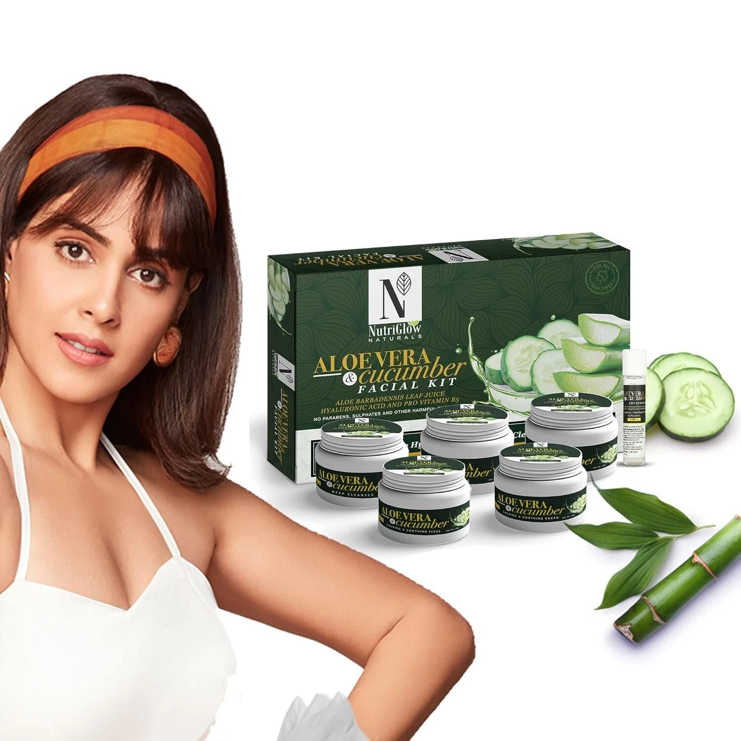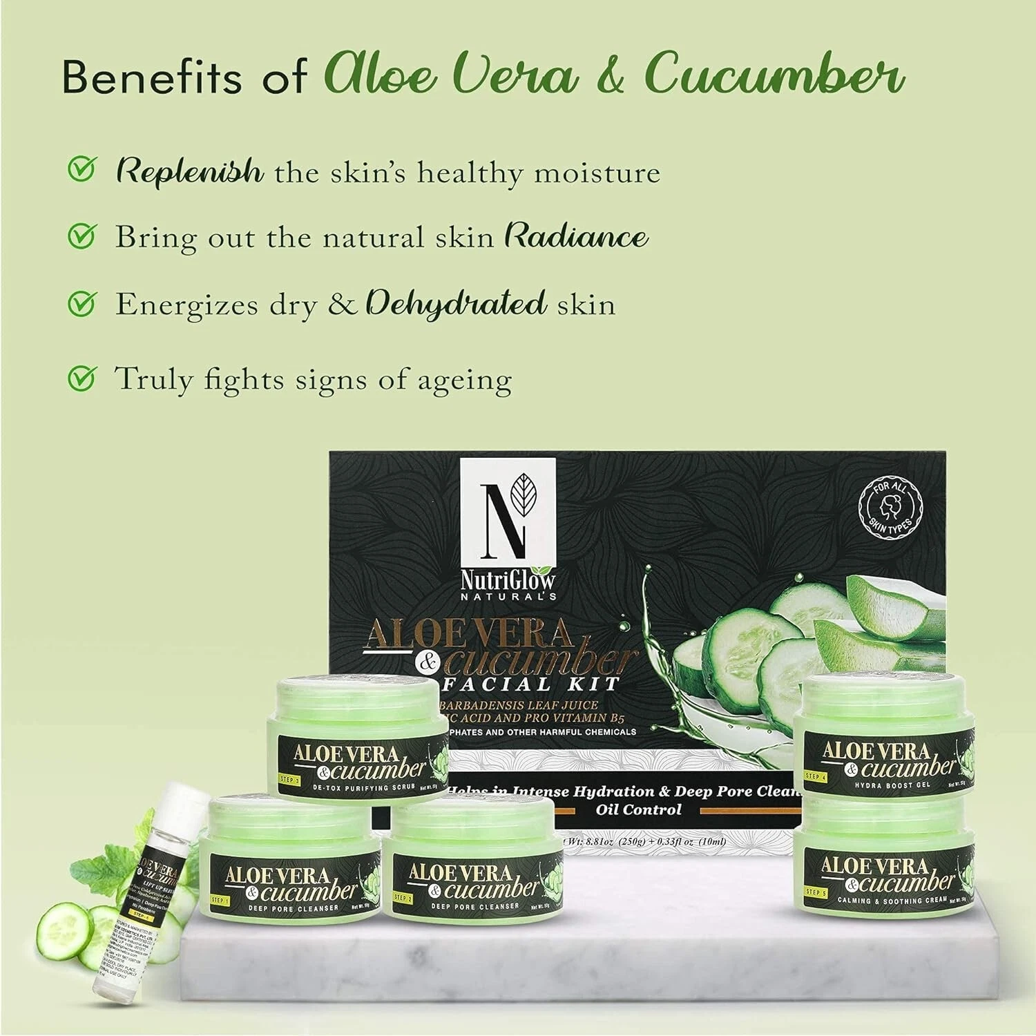 Home Skin care NUTRIGLOW NATURAL'S ALOE VERA CUCUMBER FACIAL KIT WITH HYALURONIC ACID - 260gm
