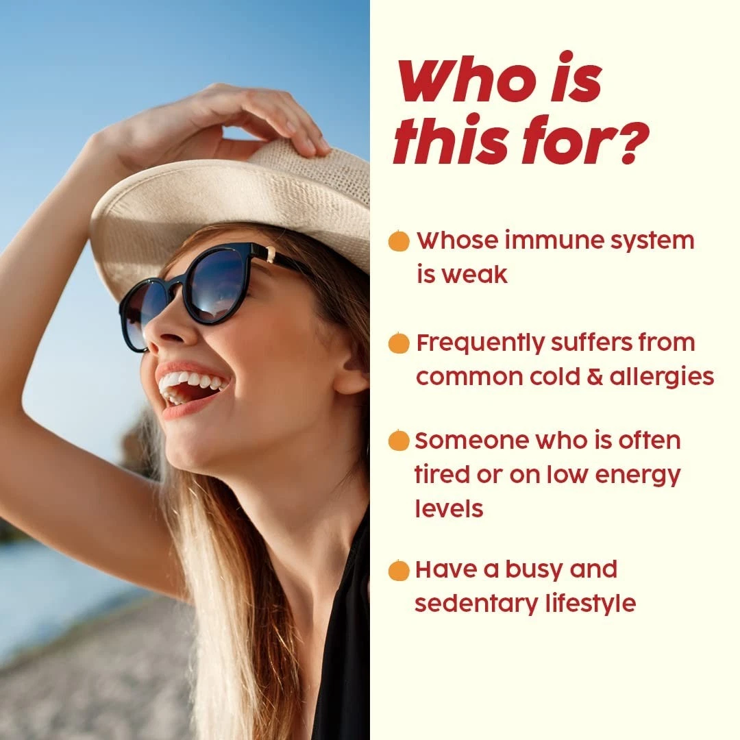 A refreshing fizzy orange flavour which uplifts your energy and helps with a better immune system.