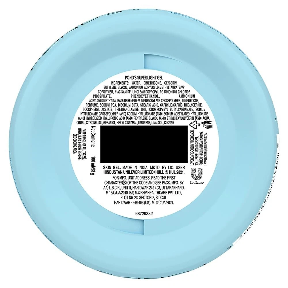 Looking for a gel moisturizer that can keep your skin hydrated for 24 hours? Look no further than the Ponds Super Light Gel 150gm! This gel based moisturizer for oily skin is perfect for all seasons and is enriched with Hyaluronic Acid, Vitamin E, and Glycerine to provide deep nourishing care for your skin. Unlike regular creams, the super light formula of Ponds light gel absorbs quickly into the skin, leaving no sticky feeling behind. The gel moisturizer helps restore your skin's moisture balance, making it soft, smooth, and moisturized. The Hyaluronic Acid in the Ponds gel formula improves your skin's natural moisture-holding capacity, while the non-oily texture keeps oiliness and stickiness at bay. The 24-hour moisture lock technology in the Ponds gel moisturizer ensures that your skin stays hydrated all day long, while its lightweight formula spreads quickly on the skin, making it easy to apply. This gel based moisturizer is perfect for all skin types and can be used throughout the year, even in the scorching summers. So say goodbye to your moisturizing woes with Pond's Institute's lightest gel formula - the all-new Ponds Super Light Gel. Get ready to enjoy soft, smooth, and glowing skin all day long!