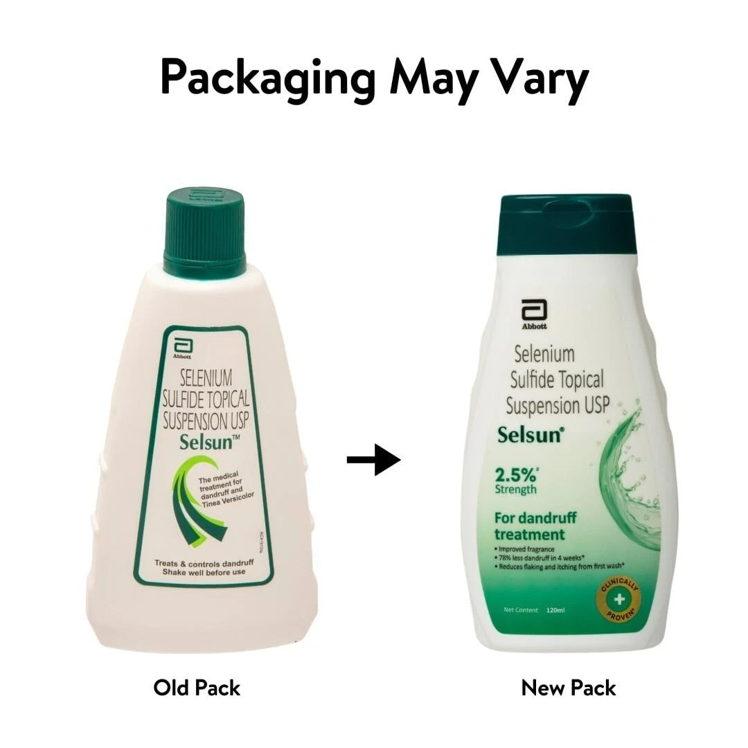 “Originating from the house of Abbott, Selsun is one of the most trusted and effective anti-dandruff shampoos. Selsun shampoo has been available for over 90 years. It is a topical medicated anti dandruff shampoo with selenium sulphide (2.5%), which helps treat and control dandruff through its unique dual-action benefit. It targets the root-cause of dandruff i.e. the fungi that cause dandruff as well as clears the build-up of dead skin cells, relieving from flaking and itching caused by dandruff. Selsun is an ideal anti-dandruff shampoo for women and men and comes with an improved fragrance. For best result, use Abbott Selsun Shampoo twice weekly for two weeks and then only when necessary or as directed by the Physician. In case of any discomfort after using the product or worsening of condition, seek medical attention immediately. There is no data to support use of selenium sulphide by pregnant or breastfeeding women. For details, please consult with your physician. Selsun must not be applied to or on infected or broken skin. Keep away from children. Avoid usage if you are allergic to any of the ingredients mentioned on the product pack. Read the label instruction carefully before use. For more information contact Abbott Medical Science Division at webmasterindia@a”