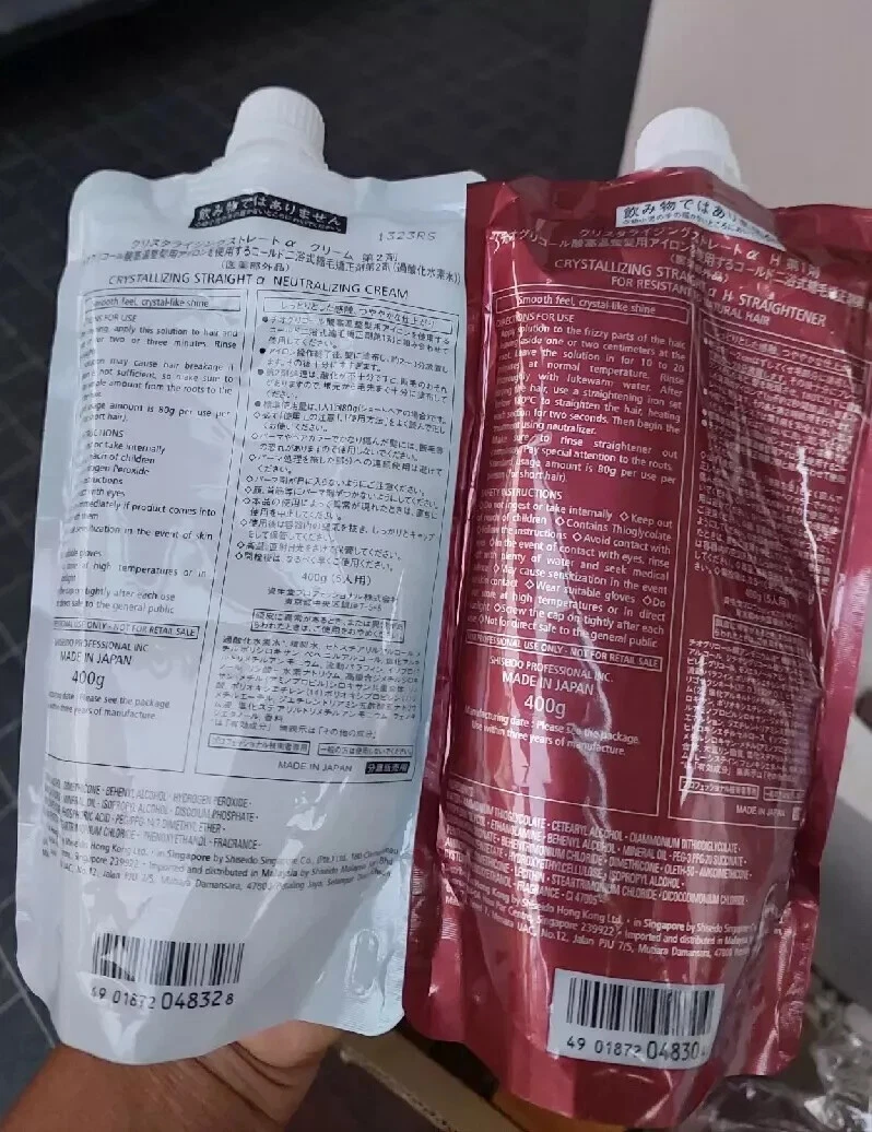 HOW TO USE H1 Straightener - Shampoo hair & dry hair thoroughly - Divide hair into 4 sections For first applications: - Begin at the nape of the neck, use a tint brush to apply H1 Straightener cream rapidly section by section along the lengths of the hair, stopping 1-2 cm from scalp. Avoid tension on the hair. - Coat the entire hair evenly & comb straight through with a wide-toothed comb - Let it set at room temperature for 10 to 20 minutes. (Retouch applications: - If the hair has already been relaxed, only apply on the re-growth) Rinse thoroughly with lukewarm water until the product is completely removed, carefully washing roots - Towel dry the hair thoroughly - Set it with flat iron below 180°C/360°F, heating each section for 2-4 seconds to straighten hair. Straighten all hair before applying Neutralizing Cream. HOW TO USE>> H2 Neutralizing Cream - Coat hair with H2 Neutralizer, ensuring coverage from roots to ends of hair CAUTION: If hair isn't coated thoroughly/sufficiently, can cause hair damage/breakage - Leave it for 7 to 9 minutes while lightly combing - Smooth down regularly so that hair remains straight during development time - Thoroughly rinse out H2 Neutralizer cream NOTE: Use a timer. The application time must be counted as part of the total development time. Total development time is 20 minutes for natural hair (including application time). Never leave the smoothing cream in contact with the hair for more than 20 minutes.