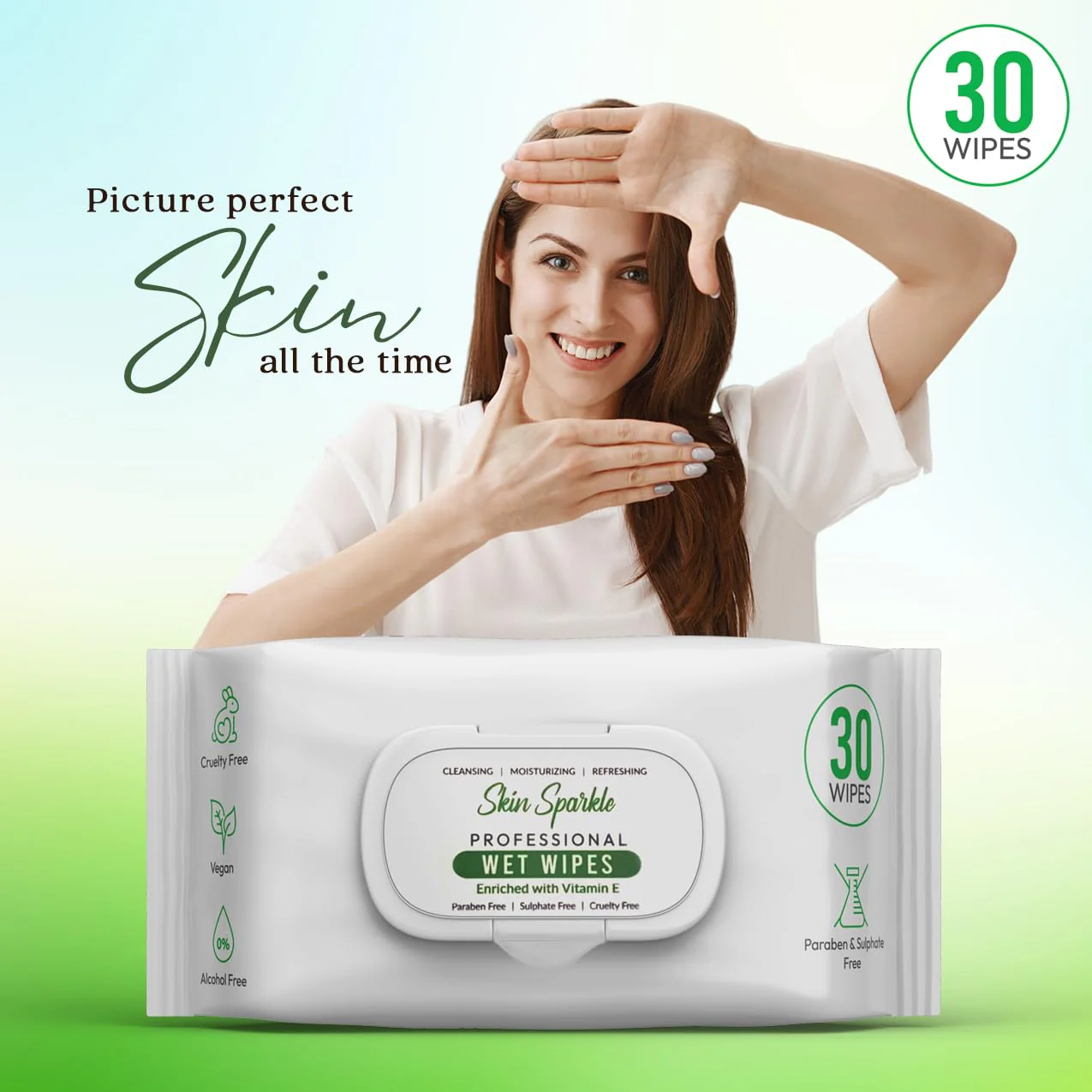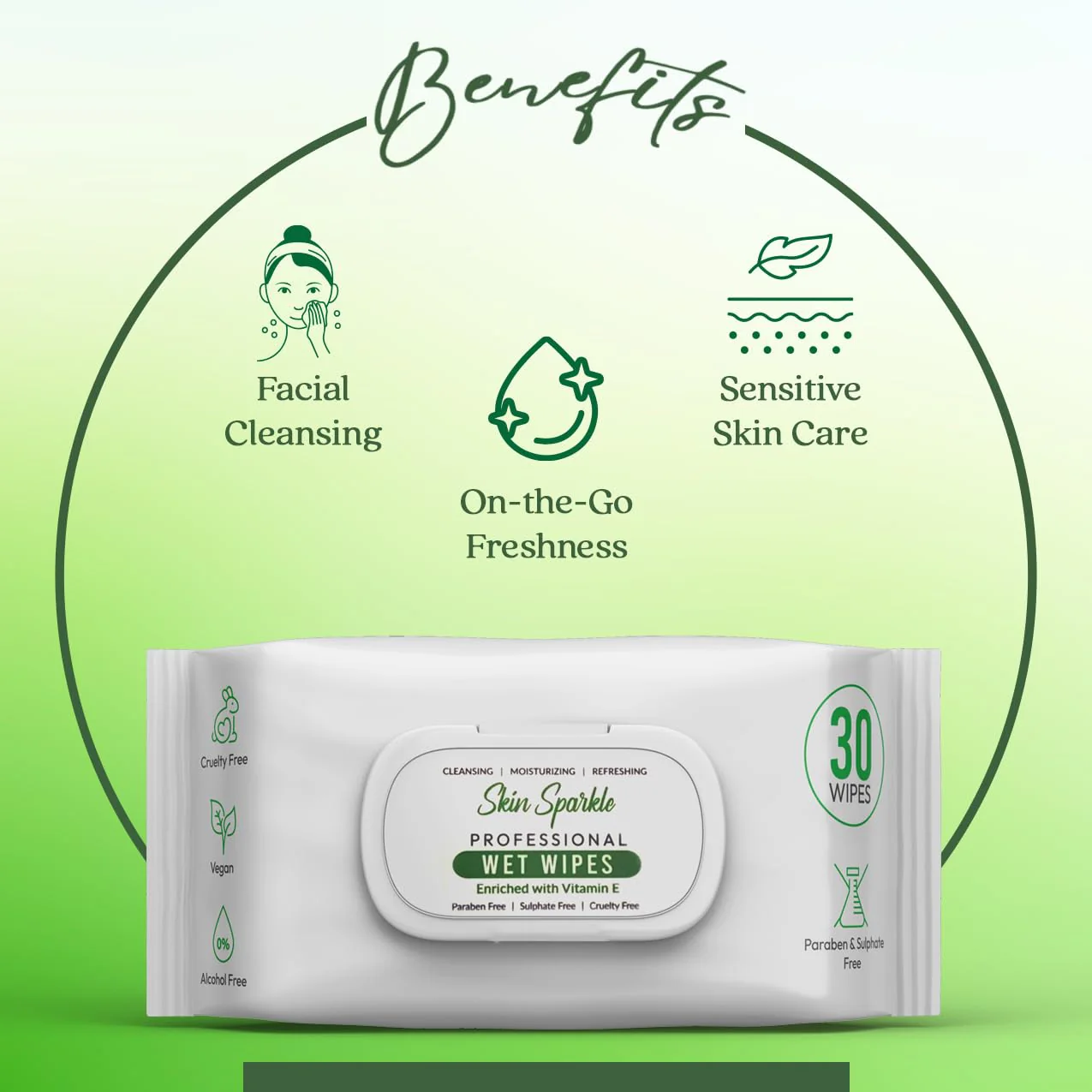 Skin Sparkle Wet Wipes | Fresh Premium Soft Cleansing Wipes | Hydrating, Refreshing, Soothing | Free from harsh chemicals, safe for all skin types