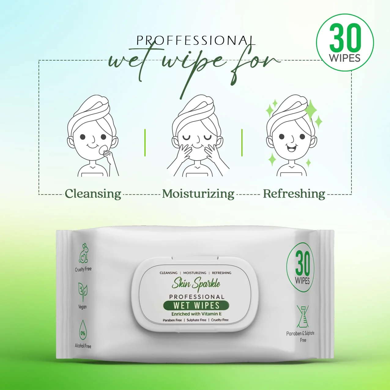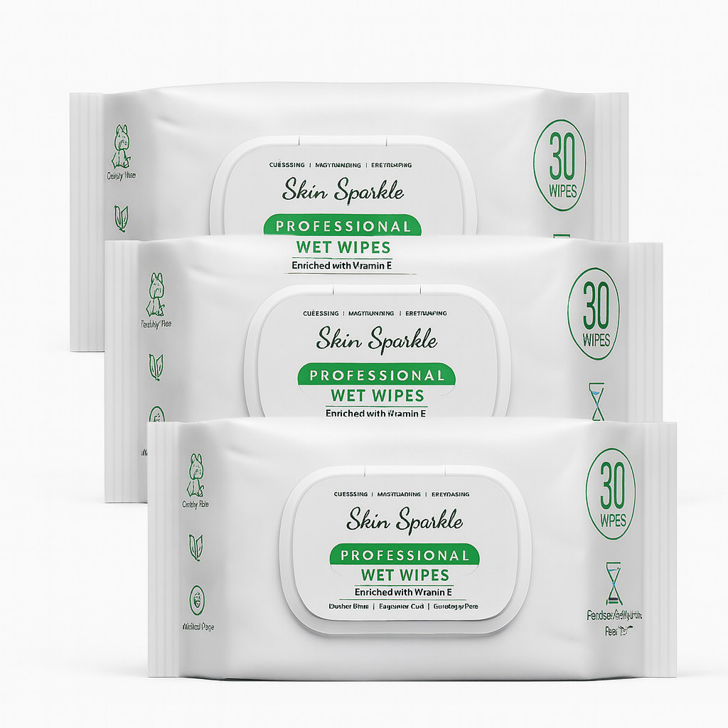 <!-- Product HTML Description: Skin Sparkle PROFESSIONAL WET WIPES --> <section style="font-family: system-ui, -apple-system, Segoe UI, Roboto, Arial, sans-serif; color:#1a1a1a; line-height:1.6;"> <h1 style="margin:0 0 .25rem;">Skin Sparkle <span style="white-space:nowrap;">PROFESSIONAL WET WIPES</span></h1> <p style="margin:.25rem 0 1rem; color:#4a4a4a;">Cleansing • Moisturizing • Refreshing</p> <!-- Quick bullets --> <ul style="list-style:none; padding:0; margin:0 0 1rem;"> <li style="margin:.35rem 0;">✅ <strong>Superior Cleaning:</strong> Effectively gets rid of makeup, grease, and grime.</li> <li style="margin:.35rem 0;">✅ <strong>Hydrating Formula:</strong> Moisturizers keep skin supple and hydrated.</li> <li style="margin:.35rem 0;">✅ <strong>Kind to Skin:</strong> Suitable for all skin types, including sensitive.</li> <li style="margin:.35rem 0;">✅ <strong>Versatile Use:</strong> Perfect for hands, face, and body.</li> <li style="margin:.35rem 0;">✅ <strong>Individually Sealed:</strong> Each wipe is sealed for freshness and hygiene.</li> </ul> <!-- Long description --> <p> Count on Skin Sparkle <strong>PROFESSIONAL WET WIPES</strong> for quick, effective, and portable cleaning. Crafted for comfort and performance, every ultra-soft wipe is enriched with a precise blend of cleansing agents that lifts oil, dirt, and impurities without disrupting your skin’s natural moisture balance. The non-abrasive texture soothes as it cleans, leaving skin feeling clean, refreshed, and renewed. </p> <p> Whether you’re traveling, hitting the gym, or need an easy refresh between routines, these wipes deliver a deep clean with no irritation. Individually wrapped wipes stay moist and ready whenever you are—making them an everyday essential for home, work, or your go-bag. </p> <!-- Benefits grid (simple) --> <div style="display:grid; grid-template-columns: repeat(auto-fit,minmax(220px,1fr)); gap:.75rem; margin:1rem 0;"> <div style="padding:.75rem; border:1px solid #eee; border-radius:10px;"> <strong>Gentle & Effective</strong> <p style="margin:.5rem 0 0;">Removes makeup and buildup while remaining non-irritating for sensitive skin.</p> </div> <div style="padding:.75rem; border:1px solid #eee; border-radius:10px;"> <strong>Moisturizing Care</strong> <p style="margin:.5rem 0 0;">Hydrating ingredients help maintain soft, comfortable skin after use.</p> </div> <div style="padding:.75rem; border:1px solid #eee; border-radius:10px;"> <strong>Hygienic Packaging</strong> <p style="margin:.5rem 0 0;">Individually sealed to lock in freshness and prevent drying.</p> </div> </div> <!-- How to use --> <h3 style="margin:1.25rem 0 .5rem;">How to Use</h3> <ol style="margin:.25rem 0 1rem; padding-left:1.2rem;"> <li>Peel open or unseal one wipe.</li> <li>Gently wipe over hands, face, and body as needed.</li> <li>Allow skin to air dry—no rinsing required.</li> <li>Dispose of the wipe in a bin. <em>Do not flush.</em></li> </ol> <!-- Safety --> <h3 style="margin:1.25rem 0 .5rem;">Safety Information</h3> <p style="margin:.25rem 0 1rem;"><strong>For external use only.</strong> Avoid direct contact with eyes. If irritation occurs, discontinue use and consult a physician. Keep out of reach of children.</p> <!-- Specs / badges --> <h3 style="margin:1.25rem 0 .5rem;">Product Details</h3> <ul style="margin:.25rem 0 1rem; padding-left:1.2rem;"> <li>Suitable for all skin types, including sensitive skin.</li> <li>Use on: hands, face, and body.</li> <li>Hygienic, single-wrapped wipes for on-the-go freshness.</li> <!-- Add or edit the following if you want to show pack info --> <li>Pack Options: Single pack or combined pack of 3 (30 wipes per pack).</li> <!-- If applicable to your product, you may uncomment these: <li>Paraben & Sulphate Free</li> <li>Alcohol Free • Vegan • Cruelty Free</li> --> </ul> <!-- Note / disclaimer --> <p style="font-size:.9rem; color:#6b6b6b; margin-top:.5rem;"> *Packaging and claims shown may vary slightly by batch. Always check the label for the latest information. </p> </section>
