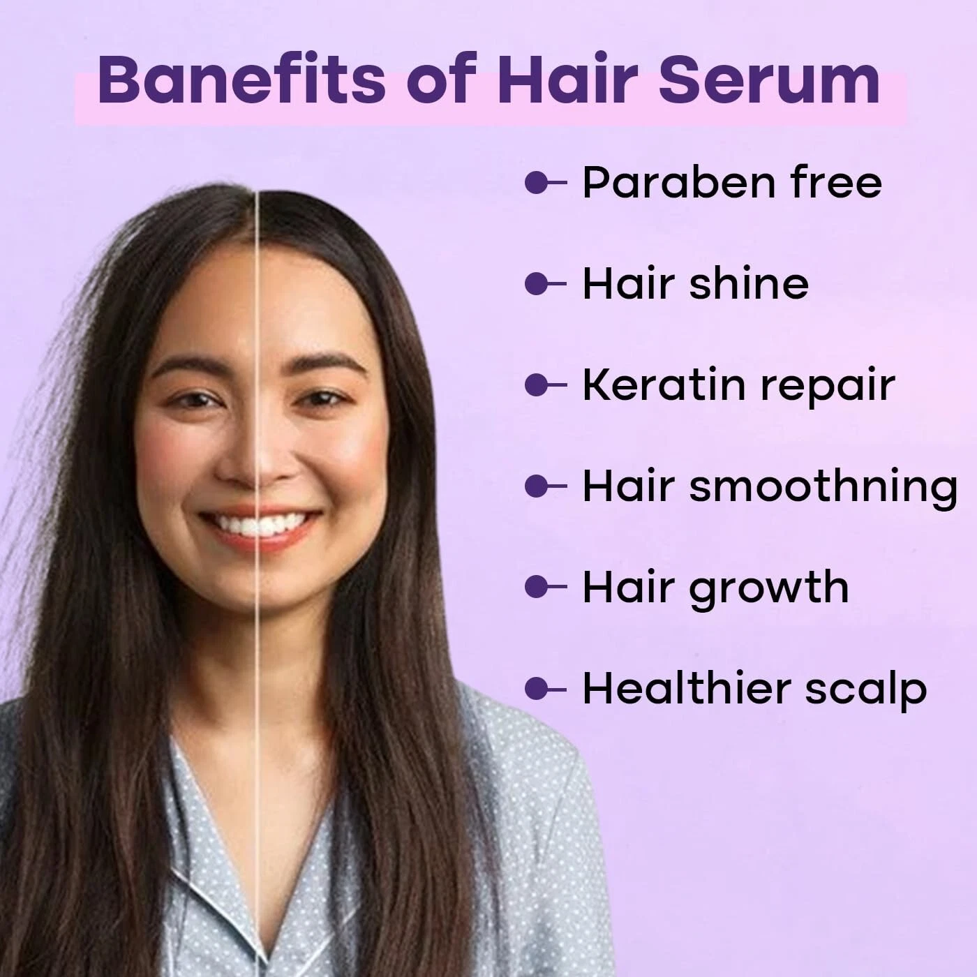 With our opulent hair serum, your locks will be revitalized and transformed into flawless, glossy locks. With its lightweight formula, your hair gets nourished and repaired from the inside out, leaving it lustrous, frizz-free, and smooth. Its natural oil and vitamin infusion fortifies each strand, lowers breakage, and encourages healthy growth. Whether you're struggling with split ends, dullness, or dryness, our hair serum offers the perfect remedy. It creates a protective barrier against environmental damage and heat treatment, making it suitable for all hair types and guaranteeing that your hair stays strong and vivid. In the comfort of your own home, use a few drops on damp or dry hair to get the long-lasting advantages of salon-caliber treatment.
