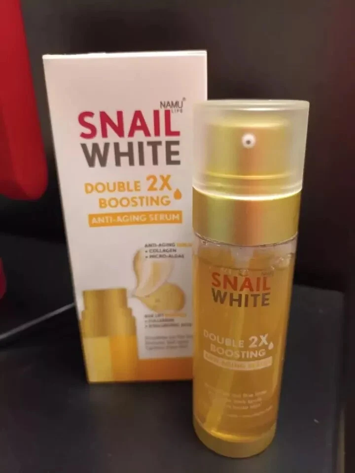 Squeeze a few drops of the Double Boosting Anti-Aging serum onto the palms of your hand and gently massage on your face and neck. Use every morning and night before applying your favorite SNAILWHITE Moisturizer.