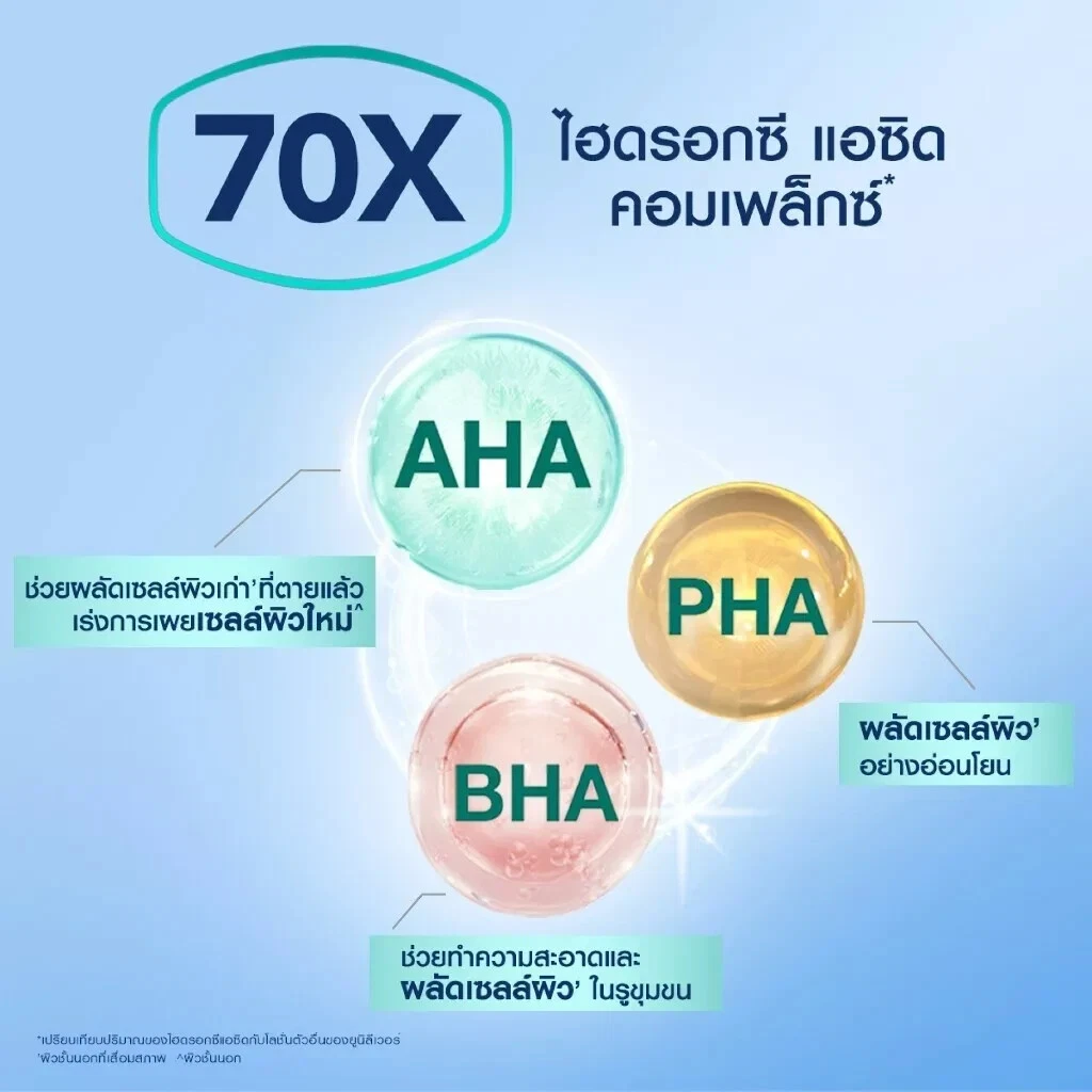 - 70x Hydroxy Acid Complex boosts skin cell turnover and gently improves skin texture, revealing the perfect smooth glow from within