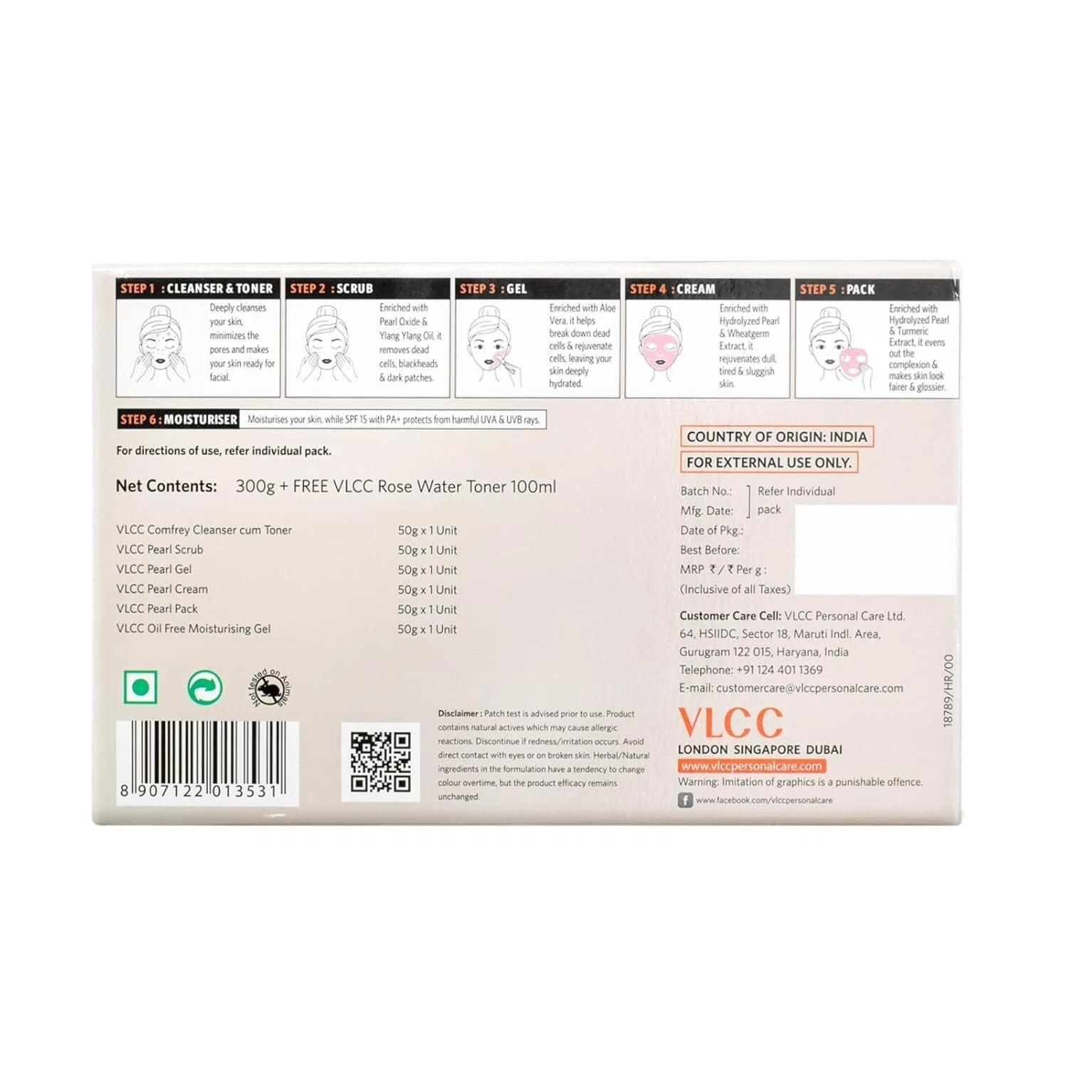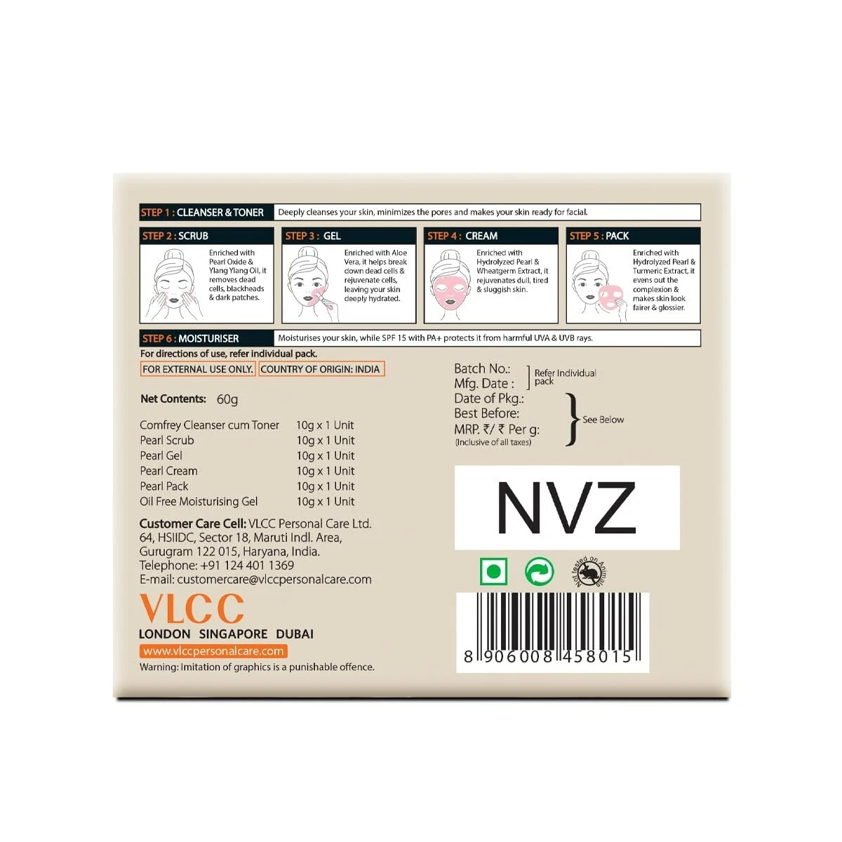 VLCC brings you a convenient and affordable way of getting facial done in the comfort of your home, with its single use VLCC Pearl Facial Kit. Enriched with the goodness of sea minerals, sea oil, pearls and other natural ingredients this facial kit is designed to rejuvenate your facial skin cells. It detoxifies and cleanses blocked pores, letting your skin breath free. Now you don't have to rush to a parlour to get that glowing look for a special occasion, thanks to this VLCC facial kit! Follow instruction on the pack for a soothing facial experience and salon-like freshness at an affordable price whenever you want to.