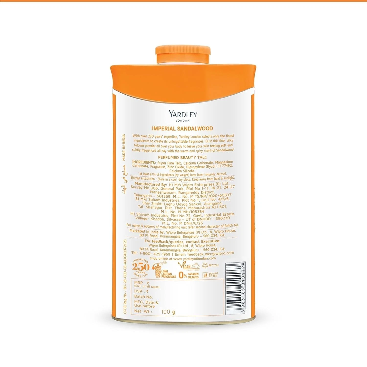 • This luxurious, perfumed talc leaves your skin feeling soft and fragrant all day long