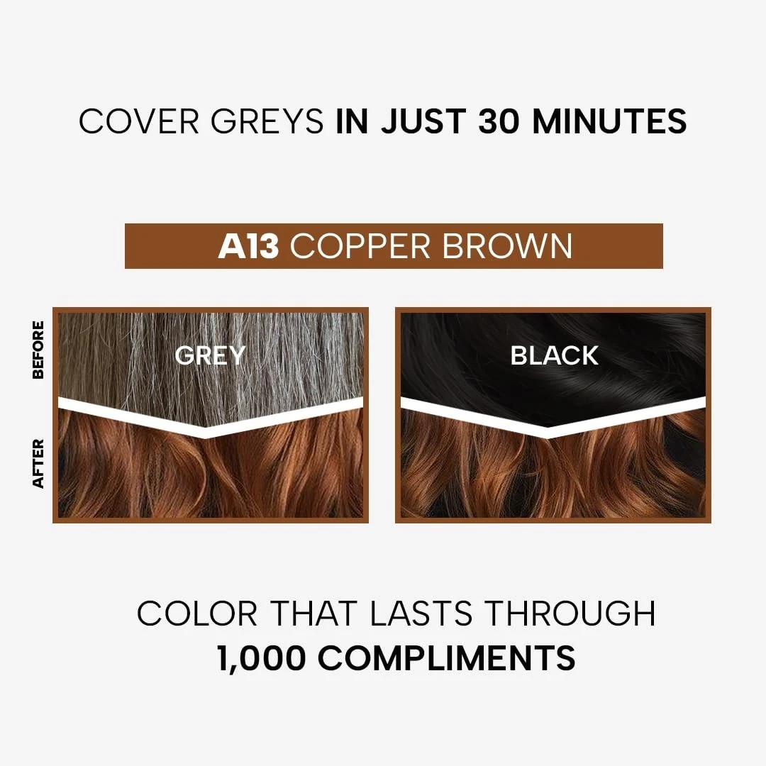 Achieve a rich, lasting hue with Berina Professional Permanent Hair Color Cream in Shade A13 – Copper Brown. This permanent formula delivers full gray coverage and vibrant color that stays true for weeks. The cream is enriched with conditioning agents and essential hair nutrients, to help protect your strands as you color. The result: hair that feels nourished, looks shiny, and radiates a warm, natural copper-brown tone.