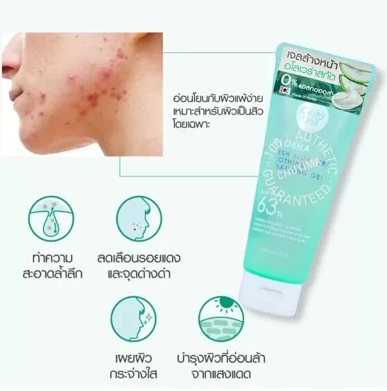 Aloe Vera Cleansing Gel with extra intense formula for deep cleansing.Gentle to sensitive and acne skin, this gel soothes the skin and revives tired skin damaged by sun rays, pollution and dusts to gain back its radiance.The texture gets absorbed into the skin to cleanse off all impurities, control oil and diminish red and dark spots to reveal a stunning result. Also, easy to rinse off, does not leave any residues and suitable for sun-exposed skin.
