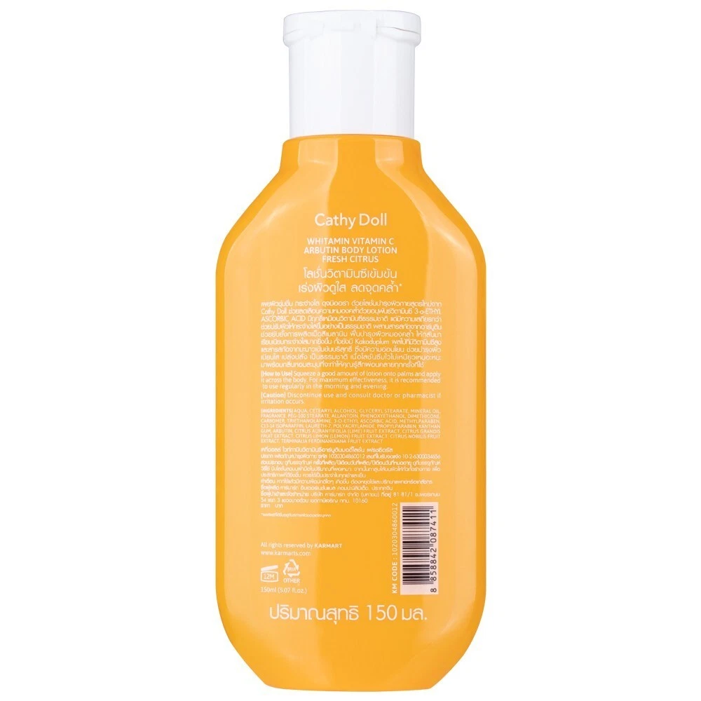 Let the new formula of body lotion from Cathy Doll help you reveal moisturized, aglow and radiant skin with the value of 99% pure 3-o-ETHYL ASCORBIC ACID, a vitamin C derivative that is more stable than natural vitamin C to offer its consistent benefits aiming to boost dullness for naturally glowing skin. It is also blended with Arbutin to suppress skin pigmentation while revitalizing dull skin for smoother and brighter complexion, along with Kakadu Plum that is rich in vitamin C and pure Lemon extract to gently nourish the skin for luminous and smooth results. This fast-absorbing and non-greasy lotion comes with delightful scent to bring relaxing sensation each time you use it.