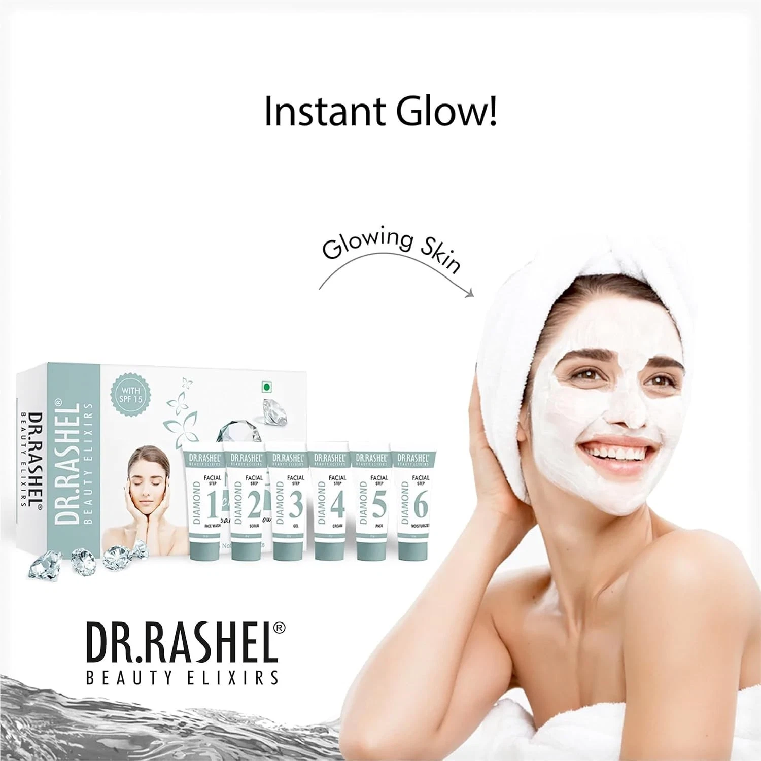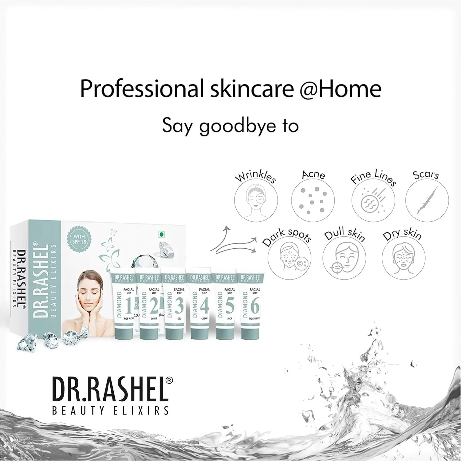 Unlock radiant, glowing, and youthful skin with the Diamond Facial Face Kit, a luxurious skincare set designed for both men and women. This complete combo pack includes a cleanser, scrub, gel, cream, and moisturizer with SPF 15, offering a full skincare routine that enhances skin texture, brightens complexion, and protects your skin from harmful UV rays.