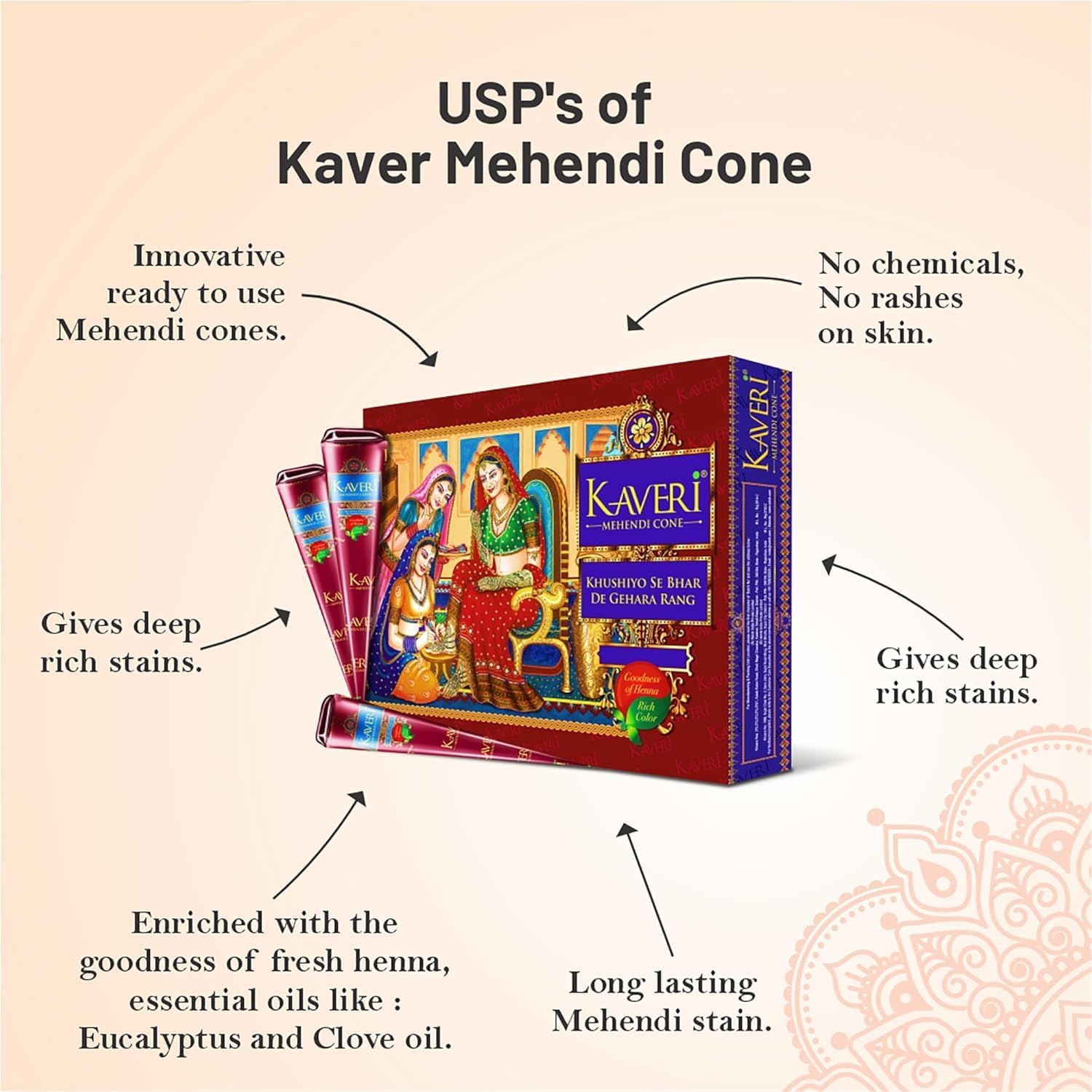 Kaveri Dark Brown Henna Mehndi Cones for Body Art Organic Temporary Tattoo