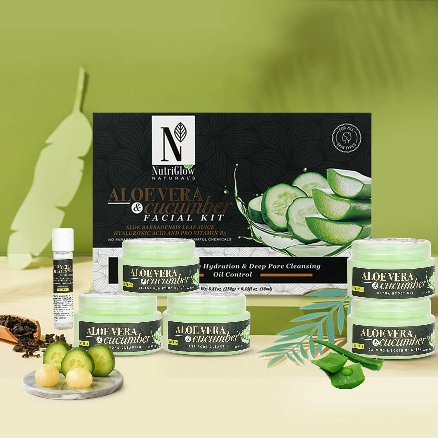 Home Skin care NUTRIGLOW NATURAL'S ALOE VERA CUCUMBER FACIAL KIT WITH HYALURONIC ACID - 260gm