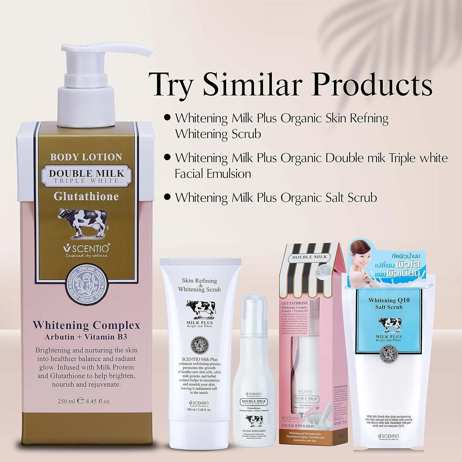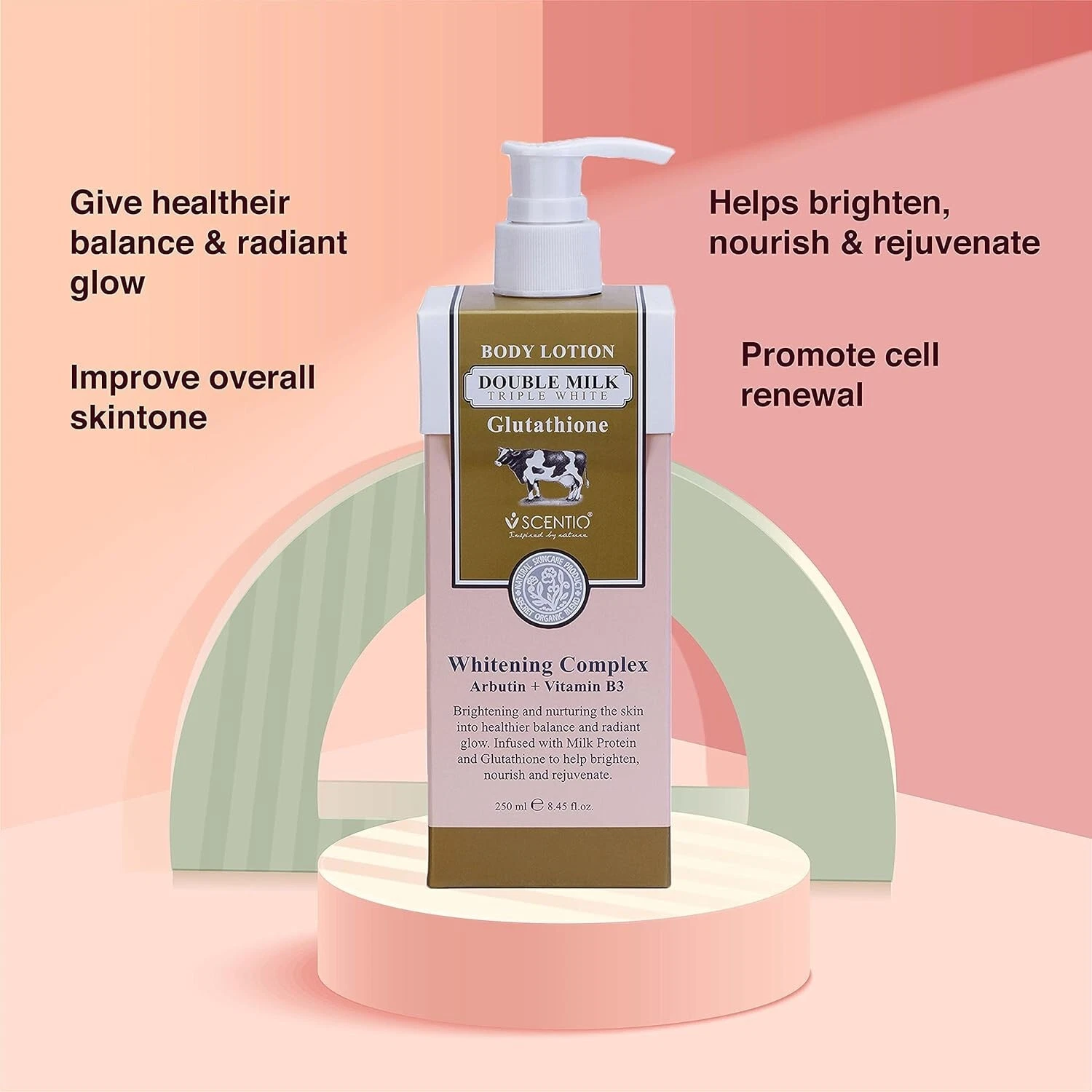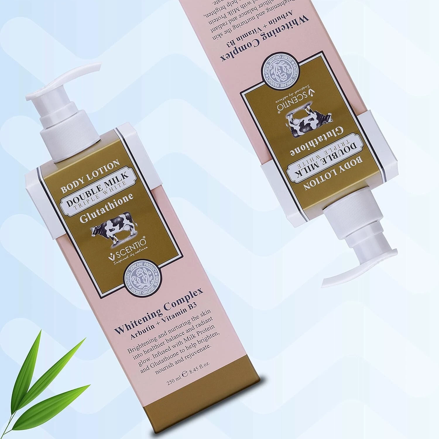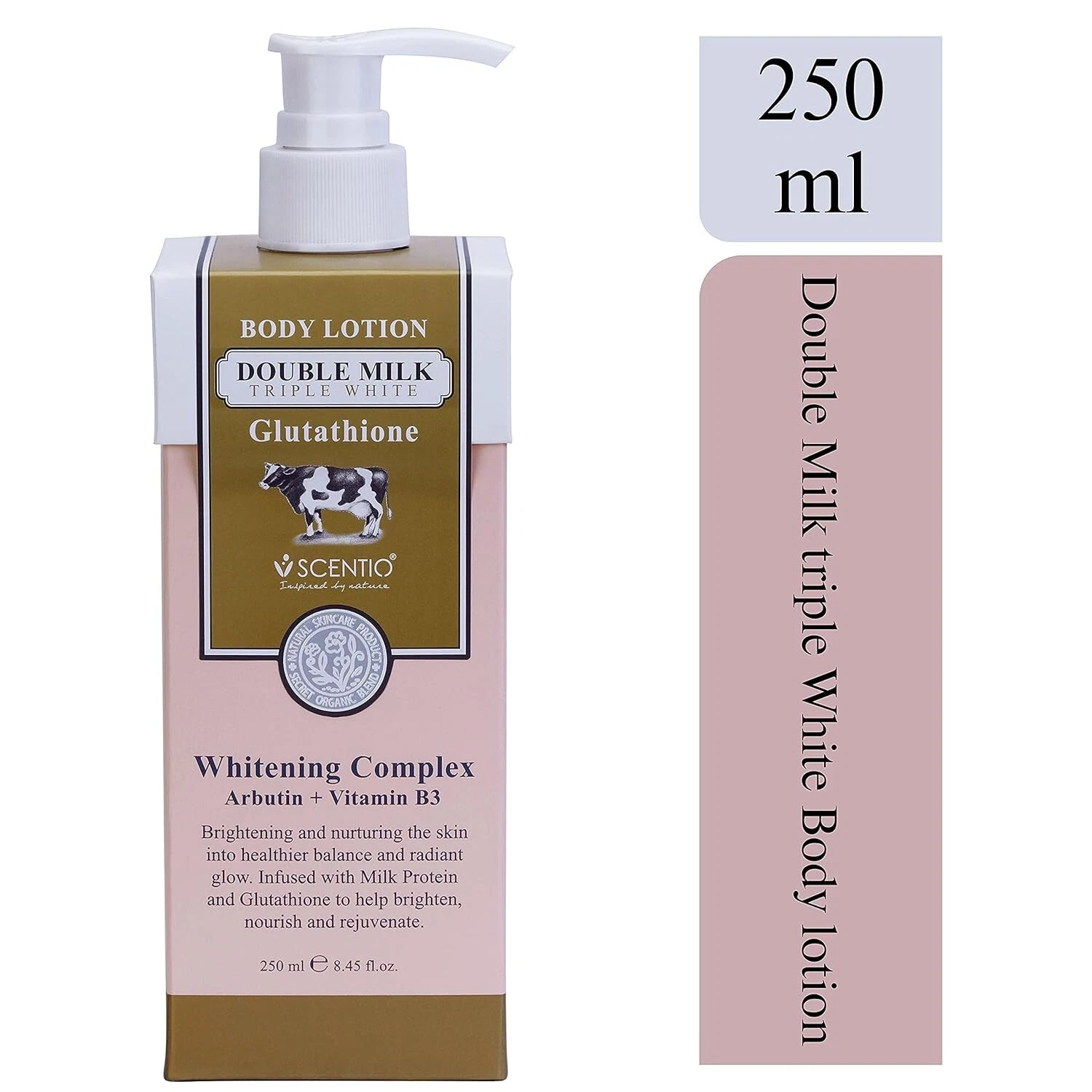 POURTAKE A LIBERAL AMOUNT ON YOUR PALMS AS NEEDED | APPLYAPPLY SCENTIO DOUBLE MILK TRIPLE WHITE ORGANIC BODY LOTION ALL OVER BODY | MASSAGEMASSAGE ACROSS YOUR BODY UNTIL FULLY ABSORBED |