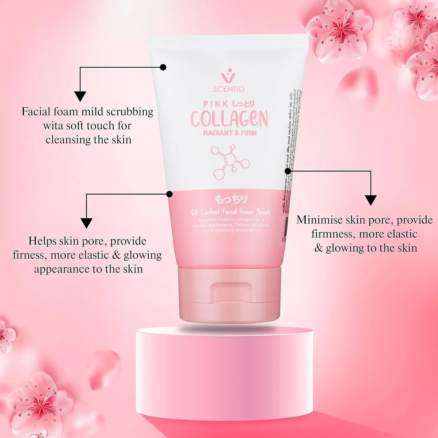 Home Skin care SCENTIO Pink Collagen OIL CONTROL & Acne Face Foaming Face Wash With Scrub 100ml
