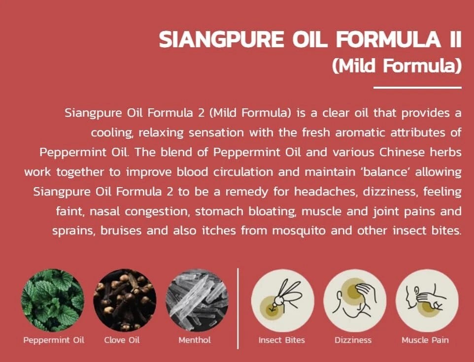 Siang Pure is premium International Brand for Herbal Natural Medicinal products made in Thailand since 1958 at the state of the Art Plant located in Bangkok to produce various products of Ancient Chinese Wisdom for Natural Cure based on the principles of self-healing. The essence of Chinese medicine is to maintain (Balance of Life) including that of the Body and External Nature as well as the internal balance of all organs. Each herbal ingredient works together to maximise the healing effects of one another mainly to improve blood circulation. Siang Pure Products are used by millions of customers in worldwide to get relief from Headache, Motion Sickness, Dizziness, Coughing (Throat Irritation), Nasal congestion from Flu, Allergy, Sinus & Asthma, Stomach-ache, Gastric Distension, Insect Bites, Joint and Muscle Pain, Shoulder & Back Pain or Cramp etc without any side effects.