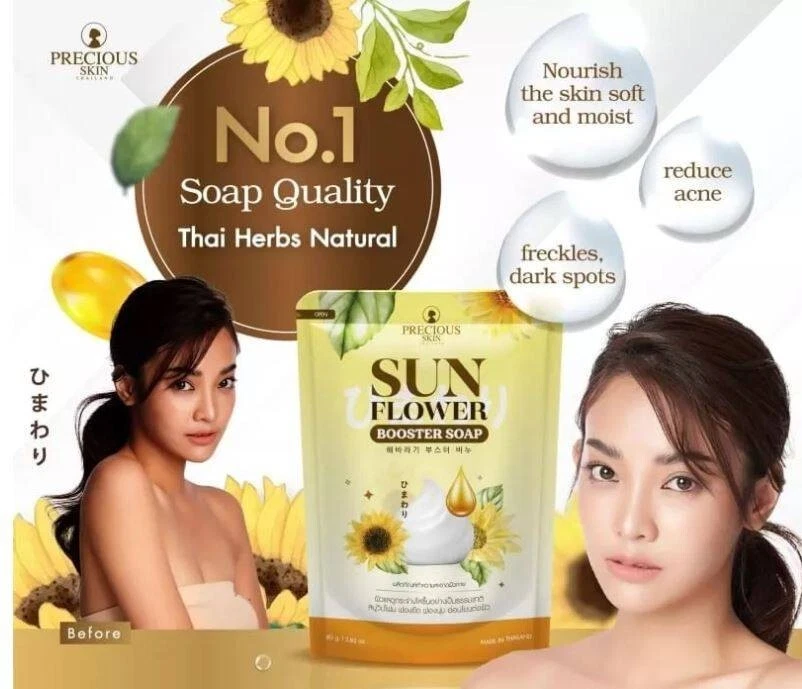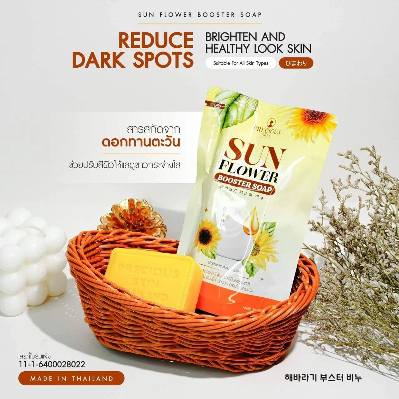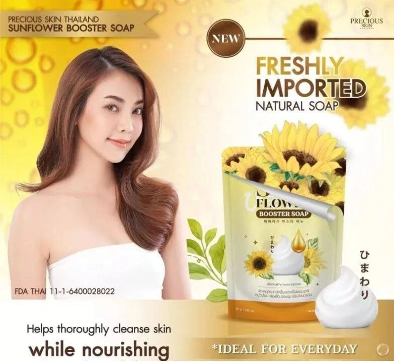Precious Skin Sunflower Booster Soap is enriched with natural ingredients. This soap contains sunflower oil. It is widely available in Bangladesh. This soap is specially formulated for brightening skin. It is made with a natural formula. This gentle soap provides a rich lather that washes away all impurities from the skin. Sunflower oil is a natural purifier that makes skin soften. It moisturizes and nourishes skin layers. It improves skin texture and leaves skin soft and supple. This soap protects the skin from damage. It reduces the appearance of fine lines. It is perfect for regular use and works well on all types of skin. This product can be used instead of sunflower oil scrub. It is safe to use and there are no harsh chemicals.